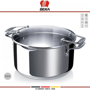 Кастрюля CHEF Pratique с крышкой-дуршлагом, 3.3 л, D 20 см, сталь нержавеющая 18/10, Beka
