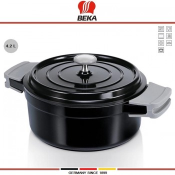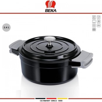 Посуда немецкой фирмы BEKA - надежная репутация, высокое качество, дизайн и продуманность. Коллекция чугунной эмалированной посуды COOK On от Beka - идеальна для варки, тушения, запекания и подачи на стол. Подходит для любых плит, включая индукционные. Подходит для духовки. В комплекте 2 съемные накладки-прихватки на ручки..