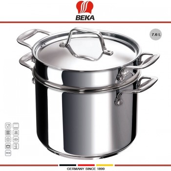Кастрюля CHEF Pasta Fun для макарон и спагетти, 7.6 литра, D 24 см, сталь нержавеющая 18/10, Beka