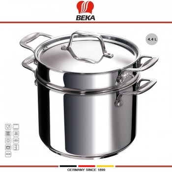 Посуда премиум-класса от немецкой фирмы BEKA - надежная репутация, высокое качество, дизайн и продуманность. Коллекция Beka EVOLUTION - современная посуда-конструктор, удобная в эксплуатации и компактная в хранении. Подходит для любых плит, включая индукционные. Изготовлена из высококачественной нержавеющей стали 18/10 с эл..