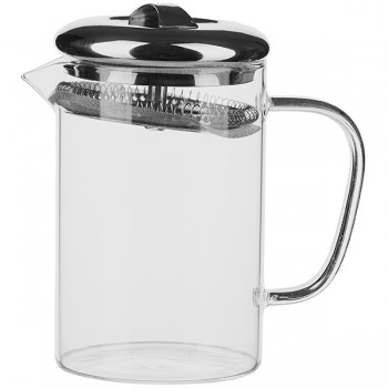 Кувшин с крышкой термостойкий (стрейнер); стекло, металл; 0, 6л; L=13, 6см; прозр.