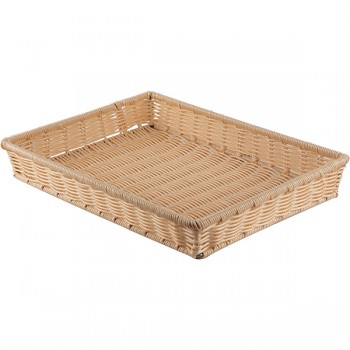 Корзина плетеная для хлеба прямоугольная; полиротанг; H=60, L=420, B=315мм; бежев.