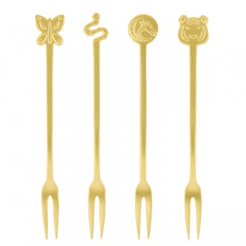 Вилка для закусок антик; сталь нерж.; золотой