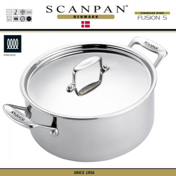 Датская посуда и аксессуары SCANPAN - это подлинно европейская посуда премиум-качества. Серия Fusion5 SCANPAN - элегантная кухонная посуда из нержавеющей стали марки 18/10 с зеркальной полировкой. Подходит для любых плит, включая индукционные. Подходит для духовых шкафов (max 220 °С). Подходит для посудом..