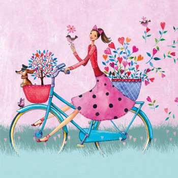 Салфетки с изображением веселой девушки, которая едет на велосипеде, дополнят праздничный стол или обычный ужин. С их помощью можно составить интересную декоративную композицию, или завернуть в них столовые приборы. Без салфеток не обходится ни одна вечеринка, важно только подобрать соответствующий рисунок. Изготовлены из очень мягкой, приятной..