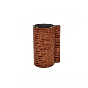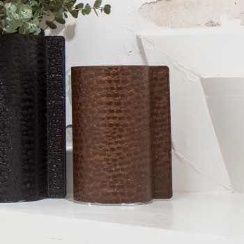 9814 CROCO cognac ваза для цветов, кожа/стекло, W 11 см, H 20 см, серия CROCO, LIND DNA