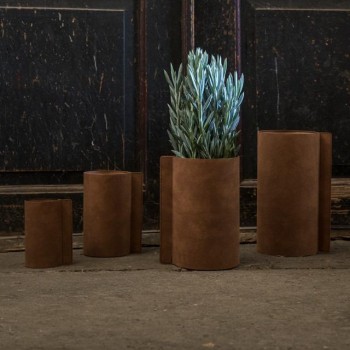 98913 LACE brown ваза для цветов, кожа/стекло, W 11 см, H 20 см, серия LACE, LIND DNA
