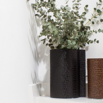 9813 LACE black ваза для цветов, кожа/стекло, W 11 см, H 20 см, серия LACE, LIND DNA
