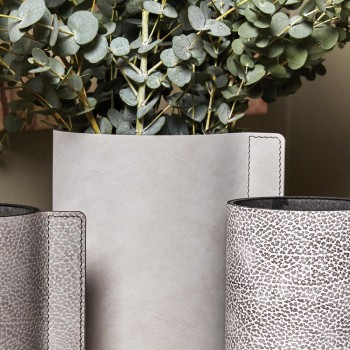 983040 NUPO light grey ваза для цветов, кожа/стекло, W 11 см, H 20 см, серия NUPO, LIND DNA