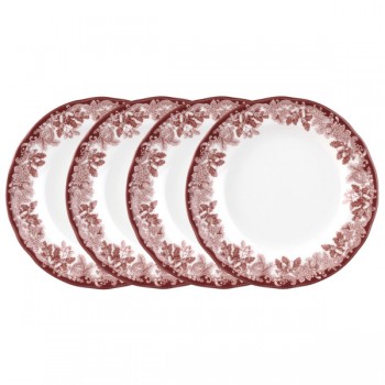 Набор из 4 обеденных тарелок 27см "Деламер, сельские мотивы" (розовых), Фаянс, Spode, Великобритания