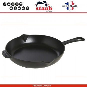 Чугунная посуда Staub производится во Франции. Подходит для всех типов плит, включая индукционные. Подходит для духовки. Рекомендована легендарным мишленовским поваром Полем Бокюзом (Paul Bocuse) и другими известными поварами. Серия PAN - это чугунные эмалированные сковороды для обжаривания, тушения, запекания, пассерования. ..