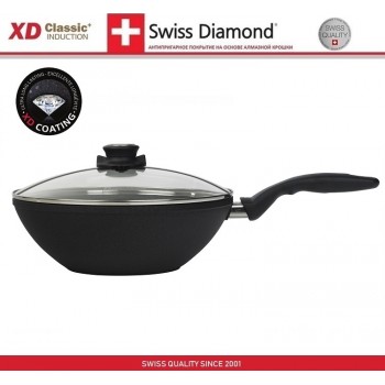 Антипригарный вок Induction XD 61128ic с крышкой, D 28 см, алмазное покрытие XD Classic, Swiss Diamond