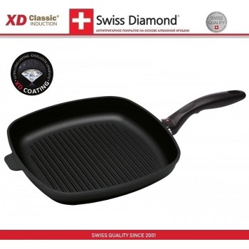 Антипригарная сковорода гриль Induction XD 63281i, 28 х 28 см, алмазное покрытие XD Classic, Swiss Diamond