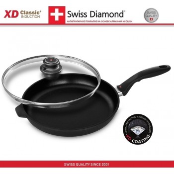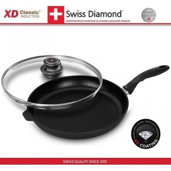 Антипригарная сковорода Induction XD 6428ic с крышкой, D 28 см, алмазное покрытие XD Classic, Swiss Diamond