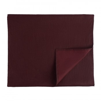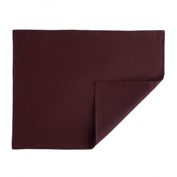 Двухсторонняя салфетка под приборы из умягченного льна с декоративной обработкой бордового цвета, Tkano