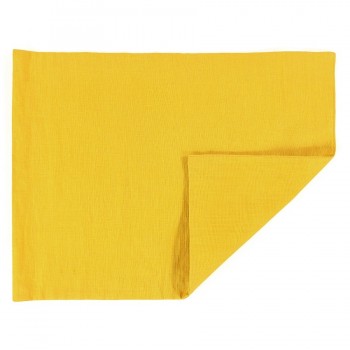 Двухсторонняя салфетка под приборы из умягченного льна с декоративной обработкой горчичного цвета, Tkano