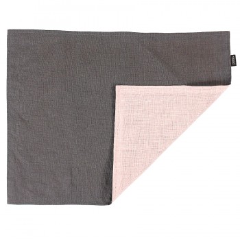 Двухсторонняя салфетка под приборы из умягченного льна с декоративной обработкой. Цвет серый/розовый, Tkano
