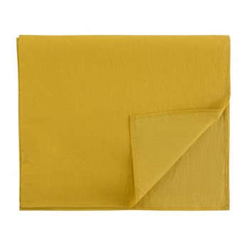 Дорожка на стол из умягченного льна с декоративной обработкой горчичного цвета, Tkano