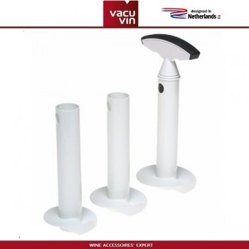 Под воздействием воздуха чай, кофе и другие сухие продукты быстро портятся, отсыревают, утрачивают свой вкус и аромат. Вакуумный насос отсасывает воздух из новой, большей по объему, емкости для хранения продуктов, создавая вакуум для оптимальных условий хранения. Используется вместе с вакуумными контейнерами Vacu Vin. (продаются отдельно..
