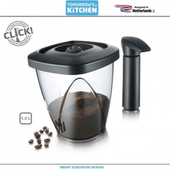 Вакуумный контейнер с помпой для кофе, чая, 1,3 л, поликарбонат пищевой, Tomorrow s Kitchen