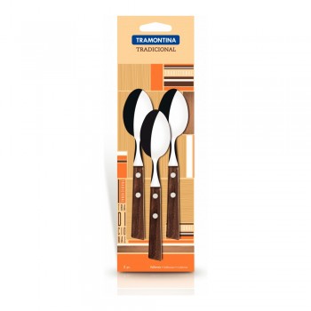 Ложка чайная с деревянной ручкой [3шт] ''tradicional'', L 15 см, сталь, дерево, Tramontina