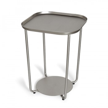 Элегантный приставной столик из металла с покрытием под никель. Основание столика служит дополнительным местом хранения. Например, для кашпо с комнатными растениями, вазы с цветами или накопителя для журналов. Столик можно использовать как журнальный или кофейный столик в гостиной, прикроватный столик в спальне или просто как декоратиную подставку ..