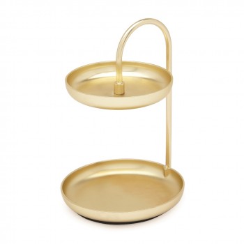 Стильный двухуровневый органайзер для украшений, который поместится даже на самый маленький туалетный столик. Он сохранит любимые украшения от влаги, пыли и просто не даст им потеряться. На двух полочках удобно хранить кольца, цепочки и браслеты, а на округлых бортиках можно развесить серьги, чтобы они были всегда на виду. Матовое латунное покрытие..