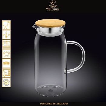 Кувшин Thermo Glass с бамбуковой крышкой и ситом, V 1500 мл, термостойкое стекло, Wilmax, Англия
