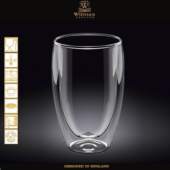 Бокал Thermo Glass с двойными стенками, V 400 мл, термостойкое стекло, Wilmax, Англия