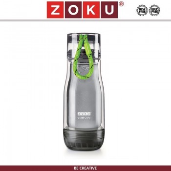 Бутылка-термос ACTIVE с внутренней колбой из стекла, 325 мл, серо-зеленая, Zoku